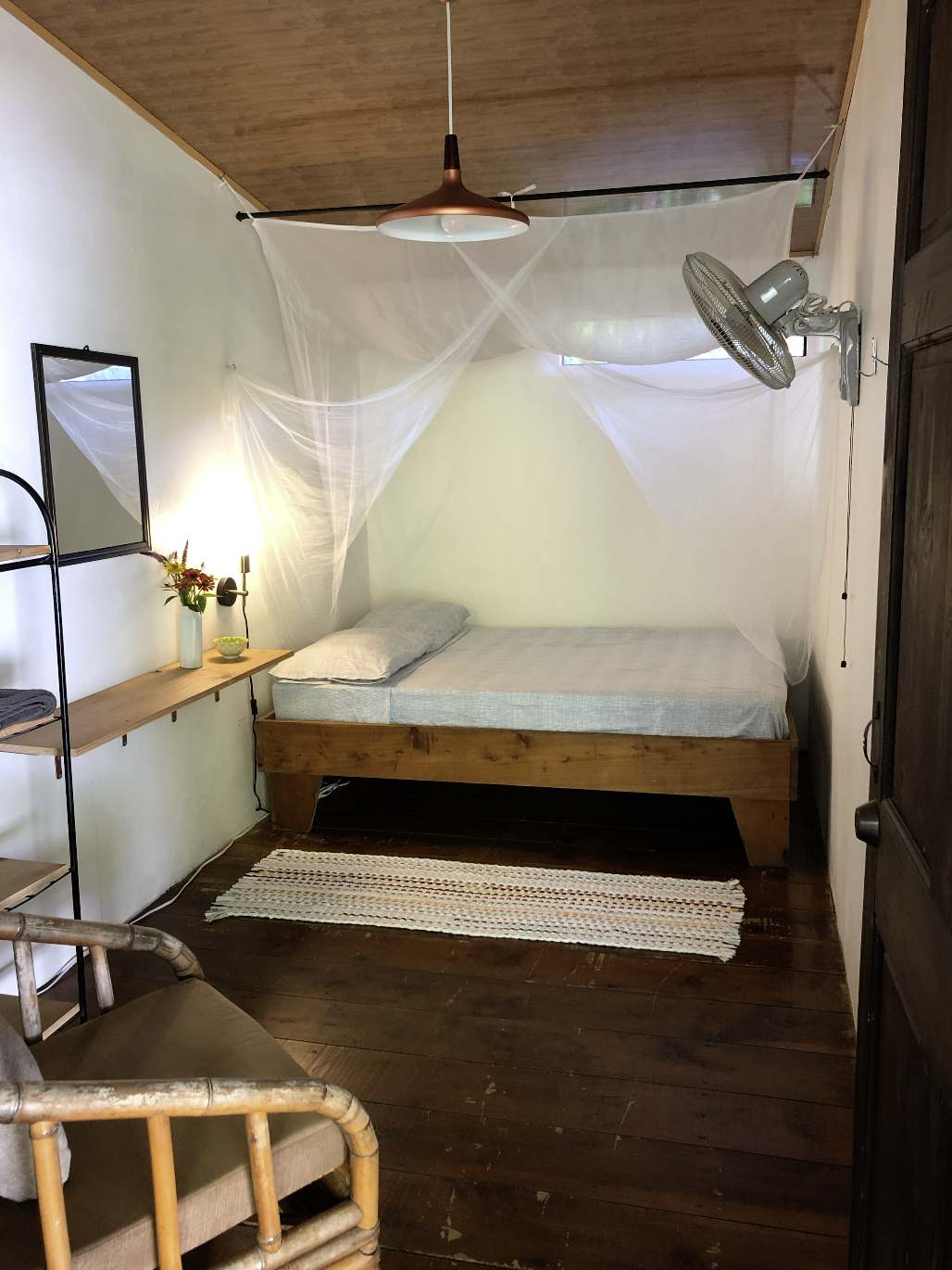 Kitchenette and private bathroom. One double bed. Hot water, fans and mosquito net.